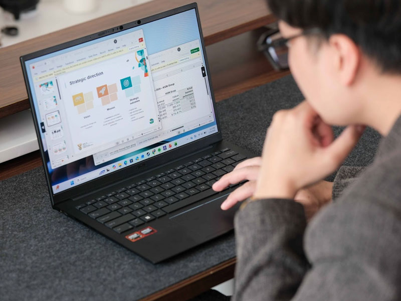 • Đủ mạnh cho toàn bộ tác vụ văn phòng phổ biến: Ryzen AI 7 445 trên ASUS Zenbook 14 (UM3406GA) và ASUS Vivobook S14 (M3407GA) đáp ứng thoải mái các nhu cầu làm việc hằng ngày như duyệt web nhiều tab, xử lý văn bản, bảng tính, họp trực tuyến và chỉnh sửa hình ảnh cơ bản. Với hiệu năng CPU dư dả cho nhóm tác vụ này, người dùng gần như không gặp tình trạng chậm hay giật trong quá trình làm việc liên tục.