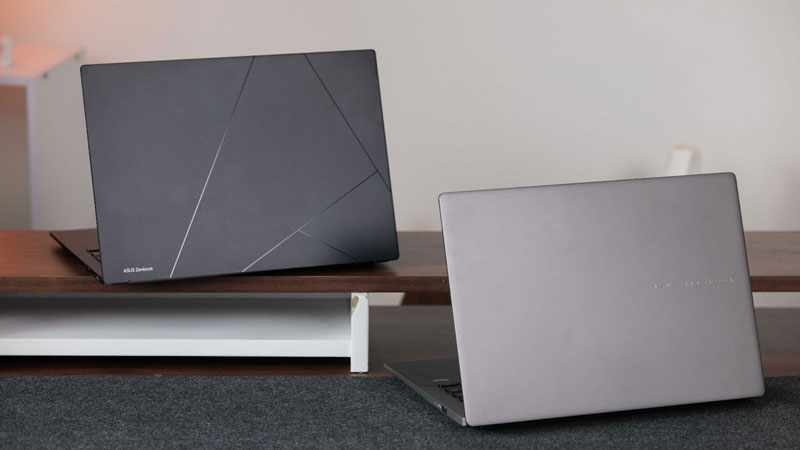 • ASUS Zenbook 14 (UM3406GA): Mẫu laptop cao cấp, mỏng nhẹ, tập trung vào trải nghiệm di động với trọng lượng khoảng 1,2 kg, pin dung lượng lớn 75Wh và màn hình Lumina OLED hướng tới người dùng làm việc chuyên nghiệp, thường xuyên di chuyển.