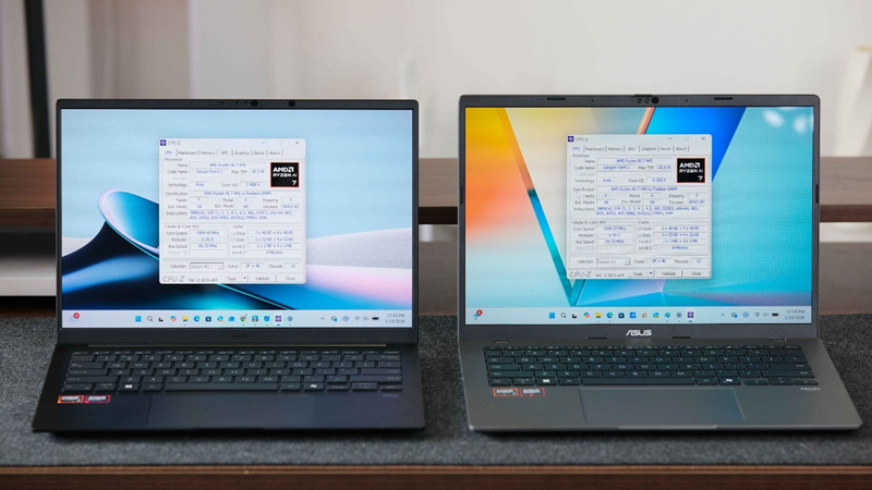 Cả hai đều sử dụng vi xử lý Ryzen AI 7 445, đạt chuẩn Copilot+ PC, đồng thời được tối ưu cho thời lượng pin dài và các tác vụ AI xử lý trực tiếp trên thiết bị có sử dụng đến NPU.