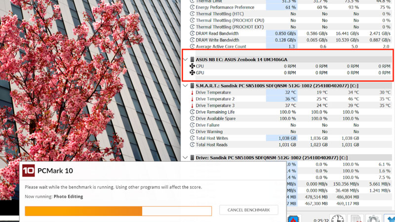 Hầu hết thời gian thử nghiệm các tác vụ văn phòng, quạt tản nhiệt của hai mẫu Zenbook và Vivobook mới hoàn toàn không cần phải kích hoạt.