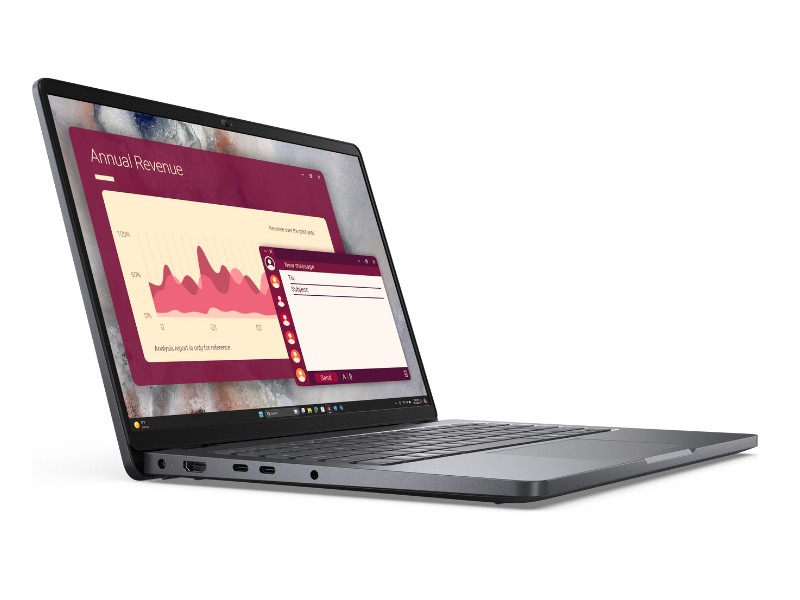 Laptop Dell Pro 14 PC14250 71076111 trang bị màn hình 14 inch với tỷ lệ 16:10 hiện đại giúp mở rộng không gian hiển thị theo chiều dọc. Nhờ đó, bạn có thể thoải mái xử lý các bảng tính Excel, duyệt web, hoặc đọc các tài liệu dài mà không cần cuộn chuột quá nhiều.